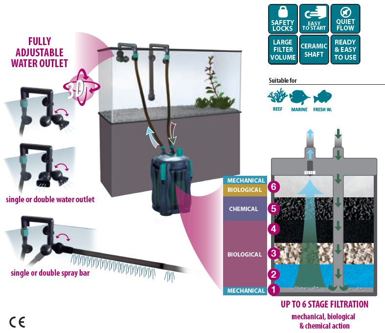 Il filtro a canestro pressurizzato NEWA Kanist garantisce il mantenimento di un ambiente acquatico sano, grazie ad un efficace e potente sistema di filtraggio, ricco di supporti espressamente creati per assicurare il massimo in termini di filtrazione meccanica, chimica e biologica. Ineguagliabile per facilità d’uso e praticità nella manutenzione. Grazie a numerosi accorgimenti tecnici, il filtro NEWA Kanist garantisce impareggiabili doti di sicurezza da perdite d’acqua assicurando, al contempo, un funzionamento estremamente silenzioso. L’alta qualità e le peculiarità intrinseche in ognuno di questi materiali filtranti, permettono di personalizzare la filtrazione del filtro esterno NEWA Kanist per risolvere efficacemente ogni problema di filtrazione, preservando ottimamente la qualità dell’acqua del vostro acquario.