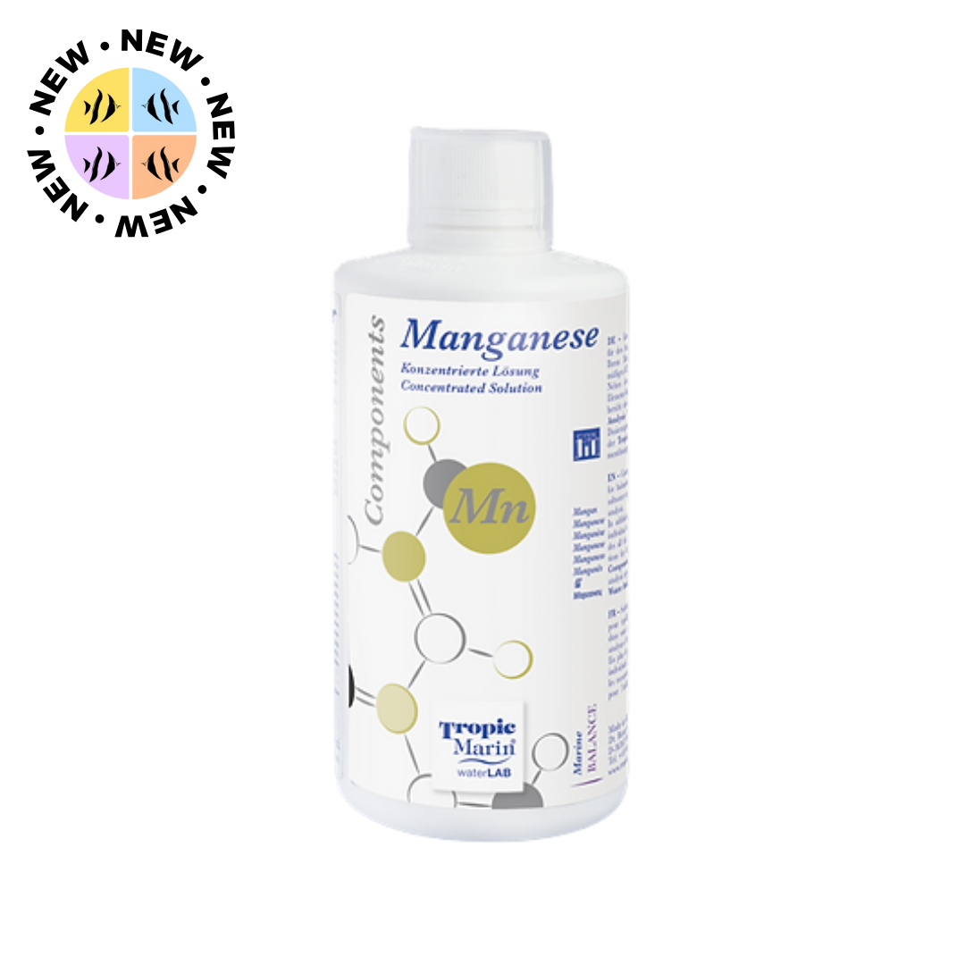 Il manganese è un metallo di transizione e come oligoelemento svolge importanti funzioni negli enzimi. In particolare è coinvolto nelle reazioni che riguardano l’ossigeno. Il manganese è distribuito in modo disomogeneo nel mare, poiché vi arriva principalmente come polvere trasportata dal vento o tramite gli affluenti, per poi depositarsi con le particelle. Nell’acquario di barriera diminuisce rapidamente, spesso scendendo al di sotto del limite di rilevazione.